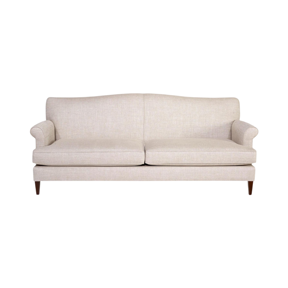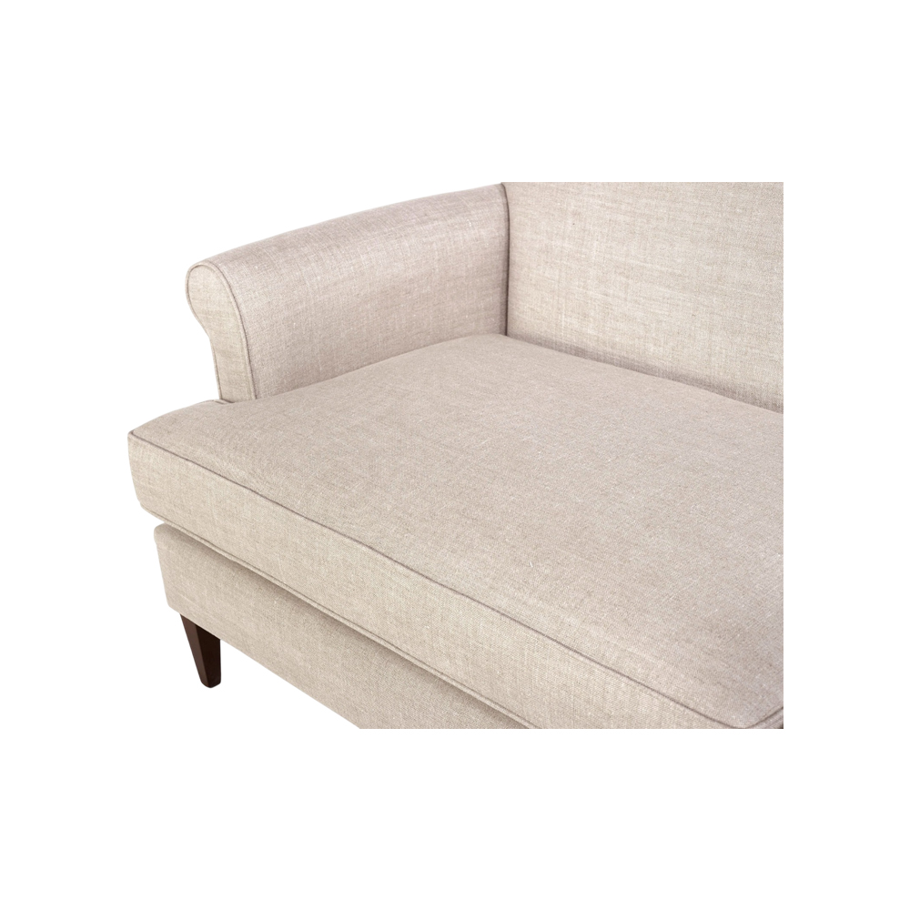 - Elegant rolled arms and subtle curved back